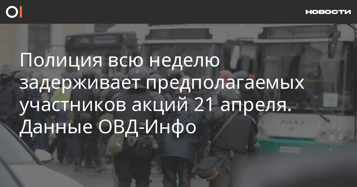 На протяжении недели после протестов 21 апреля в поддержку Алексея Навального полицейские ходят домой к вышедшим на улицы или сделавшим репост об акции. С подобным давлением столкнулись и журналисты, которые освещали протесты. ОВД-Инфо публикует известные данные