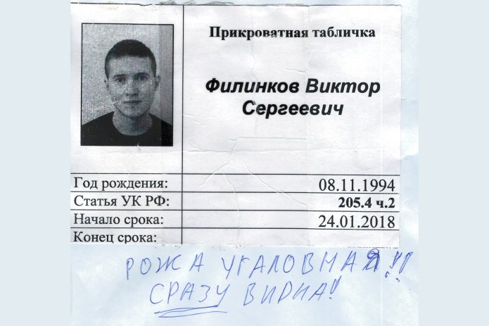 - Фигуранта петербургского дела «Сети» Виктора Филинкова в шестой раз подряд поместили в штрафной изолятор в ИК-1 Оренбургской области. Что стало поводом для этого, неизвестно. Ранее Филинкова помещали в ШИЗО из-за того, что он якобы не поздоровался с сотрудником колонии. Летом 2020 года молодого человека признали виновным по статье об участии в деятельности террористического сообщества (ч. 2 ст. 205.4 УК) и приговорили к семи годам лишения свободы.