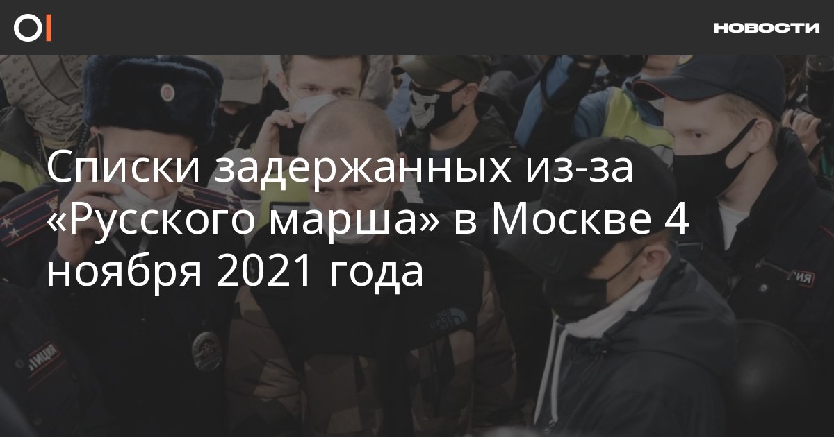4 ноября 2021 года в Москве националисты планировали провести «Русские марши» в центра города и в Люблино. Перед началом акций силовики перекрыли Красную площадь, а также подогнали автозаки к станциям метро. По данным на 16:00 5 ноября, полицейские задержали как минимум 27 человек, планировавших участвовать в «Русском марше». Публикуем список.