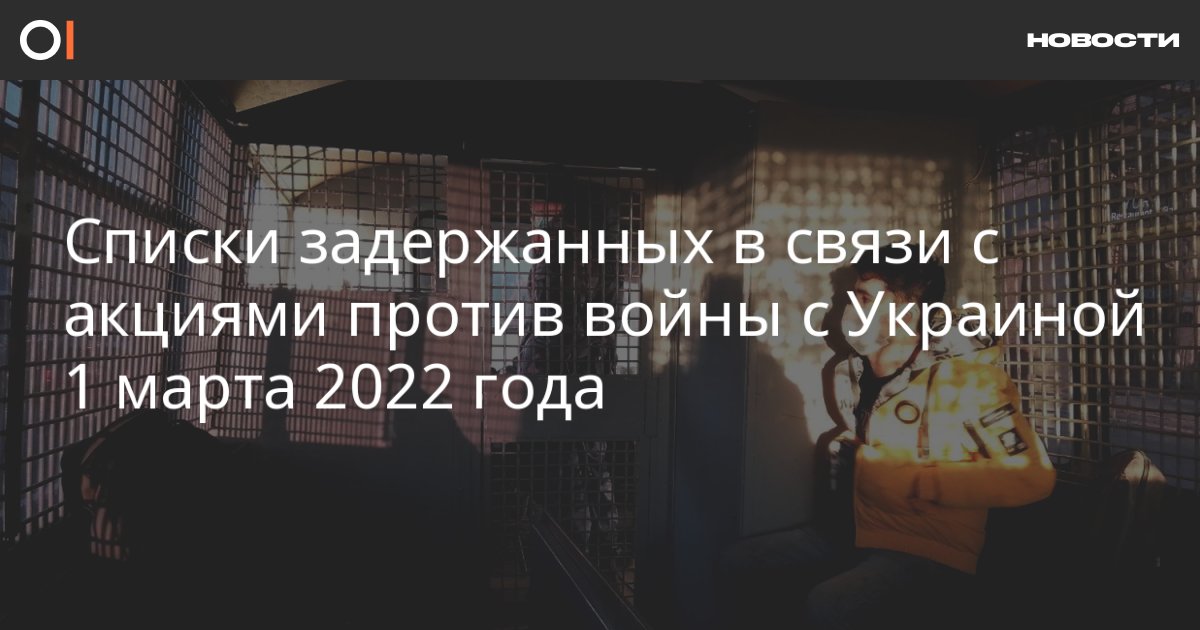 1 марта во многих российских городах продолжаются акции против военных действий России на территории Украины. Публикуем списки задержанных в этот день.