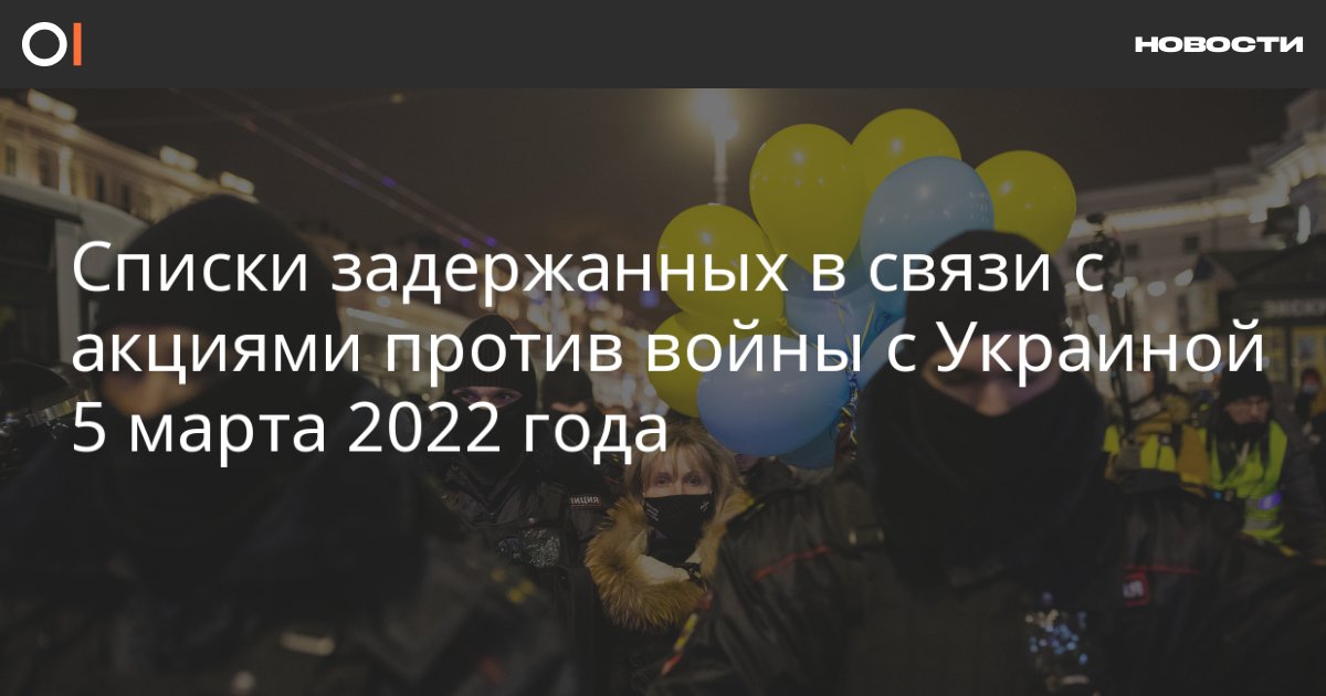 5 марта во многих российских городах продолжаются акции против военных действий России на территории Украины. Публикуем списки задержанных в этот день.
