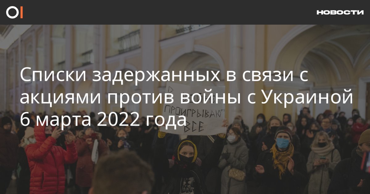 6 марта во многих российских городах продолжаются акции против военных действий России на территории Украины. Публикуем списки задержанных в этот день.