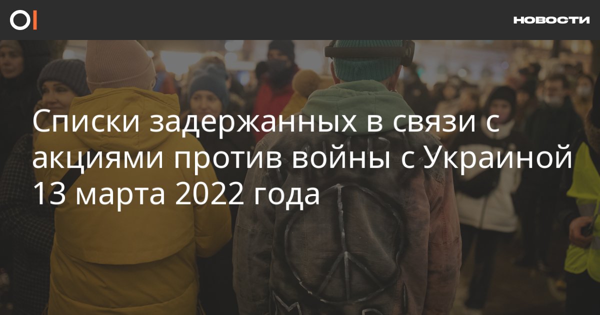 13 марта во многих российских городах продолжаются акции против военных действий России на территории Украины. Публикуем списки задержанных в этот день.