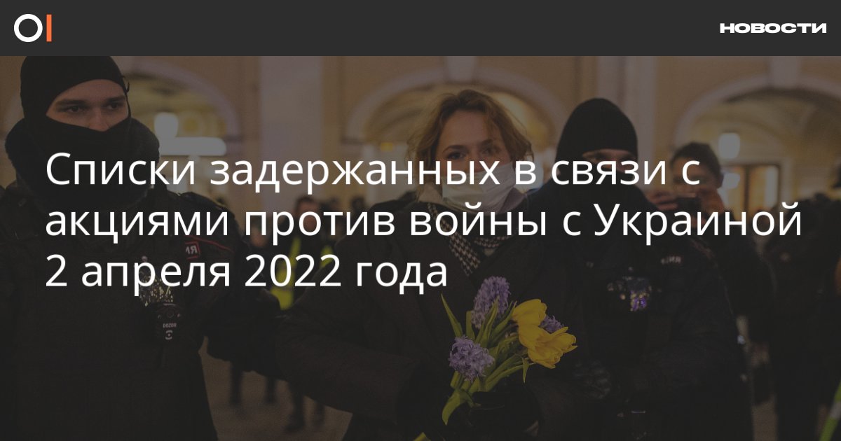2 апреля во многих российских городах продолжаются акции против военных действий России на территории Украины. Публикуем списки задержанных в этот день.