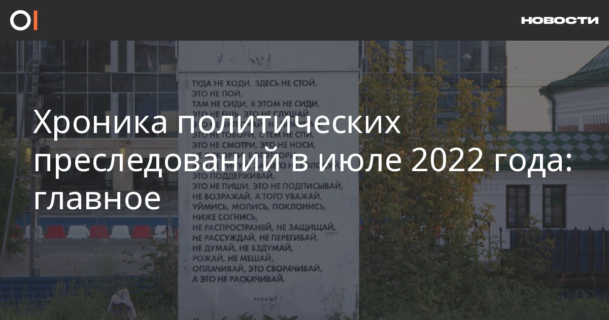 В июле российская власть усилила давление на независимые общественные организации: часть из них Генпрокуратура признала «нежелательными», а с некоторыми решил расправиться Минюст, потребовав их ликвидации. Силовики продолжили заводить уголовные дела за высказывания и акции против войны с Украиной, а суды — выносить за это приговоры, назначая в том числе реальные сроки. Рассказываем о главных новостях прошедшего месяца.