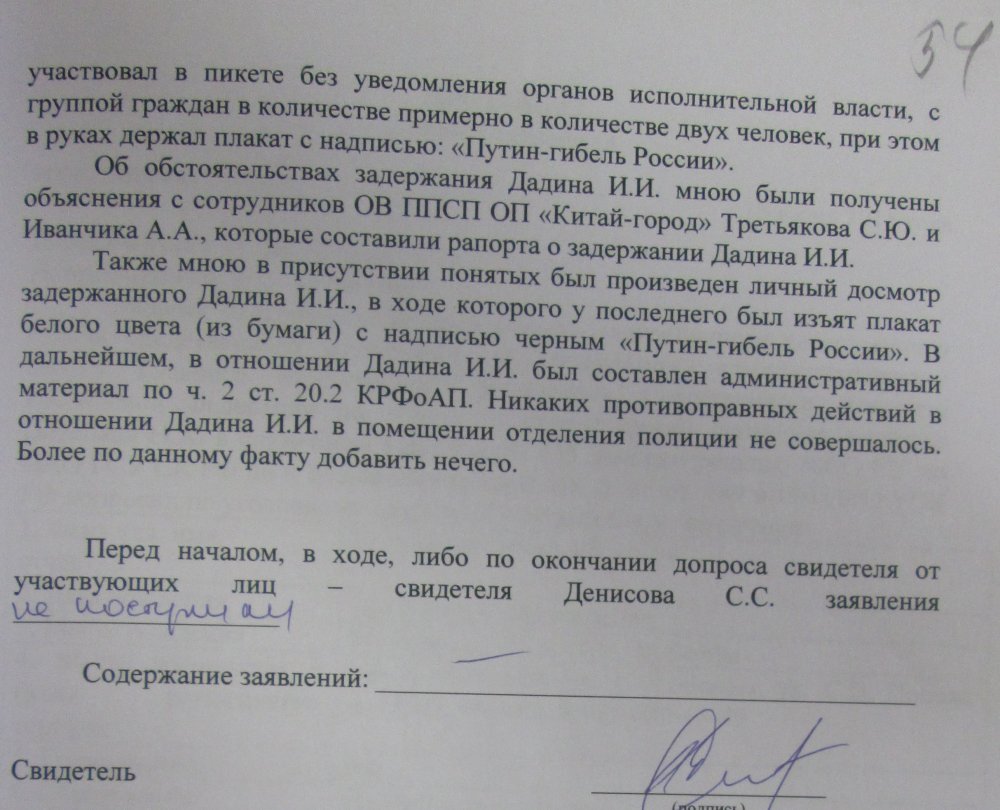 Но оба приведенных выше довода, несмотря на свою неоспоримую справедливость, — это лишь игра на чужом поле, аргументы в чужом дискурсе. Со статьей 212.1 все намного проще. Эта статья, как и связанная с ней статья 20.2 КоАП («Нарушение установленного порядка организации либо проведения собрания, митинга, демонстрации, шествия или пикетирования»), входит в прямое противоречие с 31-й статьей Конституции России, а значит, согласно все той же Конституции, не имеет права на существование. О деле же пока единственного осужденного Ильдара Дадина говорить и вовсе нет смысла — все «эпизоды», на которых строится дело, сфальсифицированы. Даже противозаконная статья 20.2 не предусматривает ответственности за одиночные пикеты, с которыми связаны два из трех «административных» эпизодов, легших в основу уголовного дела. Вряд ли всерьез можно относиться к протоколу, в котором указано, что Дадин участвовал в акции в количестве «примерно двух человек». В третьем же случае Ильдар был задержан еще на подходе к «месту преступления» — Манежной площади, где оппозиционеры традиционно проводят одиночные пикеты. То есть самих административных правонарушений не было в принципе. Так же бессмысленно говорить и о несоразмерности наказания, когда речь идет об абсолютно невиновном, даже в рамках КоАП, даже относительно «сомнительной» 20.2, человеке. Это все равно, что пытаться оценить, во сколько раз нуль меньше единицы.