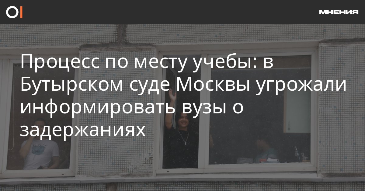 Юрист ОВД-Инфо Мария Немова защищала в Бутырском районном суде Москвы задержанных на протестах в поддержку Алексея Навального. Председатель суда Татьяна Перова заявила ей, что копии административных постановлений в отношении задержанных студентов будут отправляться в вузы. Была ли реализована угроза, неясно: трое доверителей Немовой рассказали ей, что в вузах после задержания на них не давили.