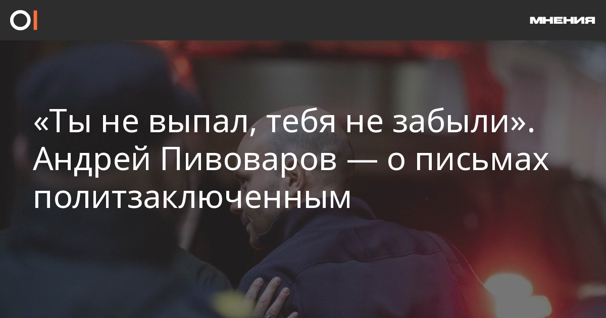 С начала июня бывший директор «Открытой России» Андрей Пивоваров находится в СИЗО по уголовному делу о «нежелательной организации» (ст. 284.1 УК). Кандидата в Госдуму от партии «Яблоко» обвиняют в том, что он сделал репост в фейсбуке и тем самым якобы продолжил деятельность «нежелательной организации». Находясь в СИЗО, Пивоваров рассказал ОВД-Инфо, о чем можно писать политзаключенным и почему важно это делать.