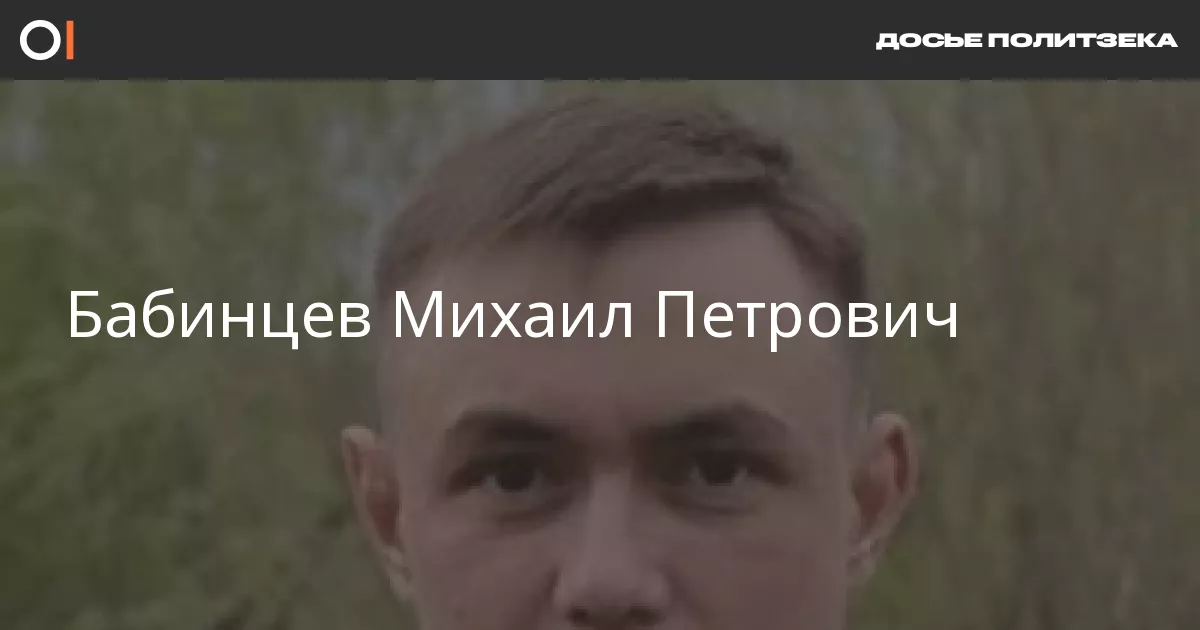 Безработный, фотограф-любитель. Ранее работал охранником в системе ФСИН. 27 октября 2022 года его задержали, после чего взяли под стражу по делу о теракте из-за того, что, по версии следствия, закинул на крышу военкомата в селе Мухоршибирь два коктейля Молотова, в результате чего обгорело два квадратных метра фасада здания. По словам жены, Бабинцев был категорически против войны. Она предполагает, что он пытался таким образом выразить свое несогласие, но, кроме того, рассчитывал, что получит судимость и не будет призван. 4 октября 2023 года приговорен в 13 годам колонии строгого режима.