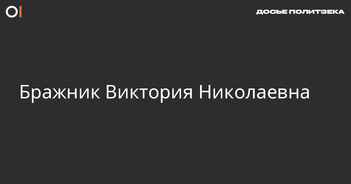 Жительница Москвы. Против нее возбудили дело о финансировании "нежелательной" организации из-за переводом украинского Духовного центра "Возрождение". Телеграм-канал SOTAvision сообщает, что ей избрали меру пресечения, не связанную с лишением свободы. 31 марта 2025 года дело поступило в суд. 26 августа 2025 года суд постановил отправить Бражник на принудительное лечение.