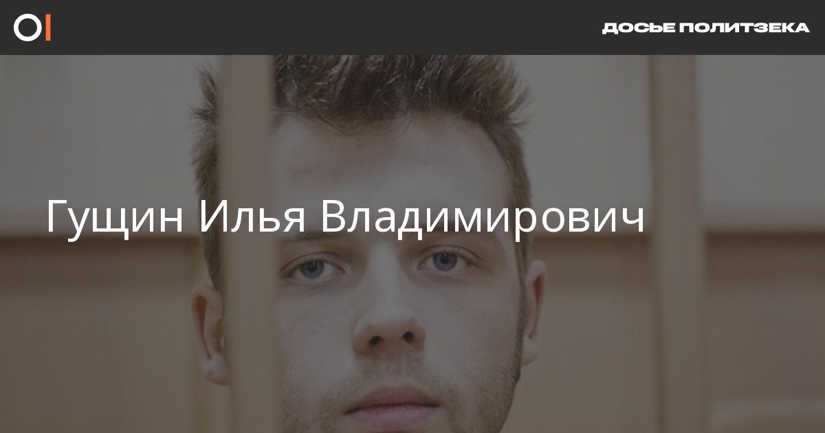 Илья Гущин — член Национально-демократической партии (на момент задержания). 6 мая 2012 года был задержан во время разгона мероприятия на Болотной площади, 8 мая приговорен к суткам административного ареста, которые уже успел отсидеть. 6 февраля 2013 года был задержан уже по уголовному делу, 7 февраля ему предъявлено обвинение в участии в массовых беспорядках, якобы имевших место на Болотной, и в том, что он обхватил сзади и толкнул полицейского Сергея Антонова. Гущин сначала признал вину в применении насилия в отношении Антонова, однако затем отказался от признательных показаний. 18 августа 2014 года суд приговорил его к двум с половиной годам лишения свободы