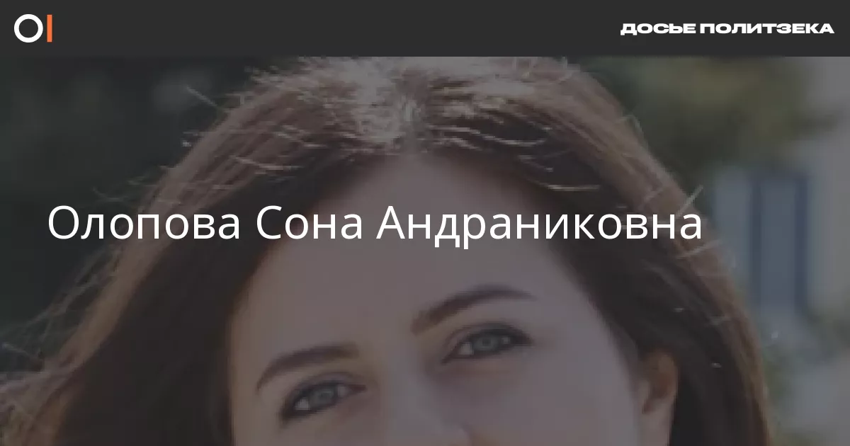 Жительница Чапаевска (Самарская область). Работала мерчандайзером и мастером в салоне красоты. 16 мая 2023 года у нее дома прошел обыск. После допроса Олопову отпустили под подписку о невыезде в рамках дела об участии в деятельности экстремистской организации. 25 января 2024 года Олопову приговорили к двум годам принудительных работ. 7 июля 2025 года она условно-досрочно освободилась из исправительного центра.