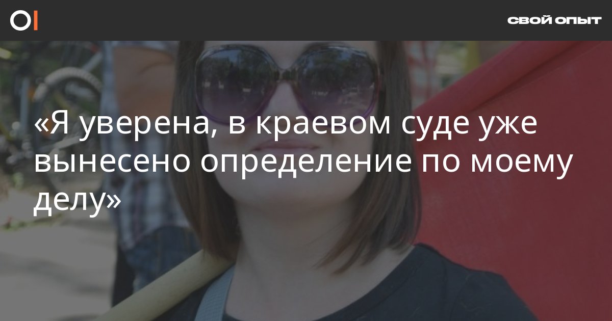 Я уверена, в краевом суде уже вынесено определение по моему делу. Я даже морально готова к тому, что оно, возможно, вынесено не в мою пользу. Если суд всё же примет безосновательные доводы прокуратуры, то этим самым он распишется в своей полной некомпетентности в правоприменении законодательства РФ.