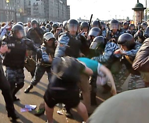 P. S. На фотографии я и 6 ОМОНовцев пытаемся помочь чуваку в зеленой футболке, которому вдруг стало плохо. 6 мая, 2012 год.