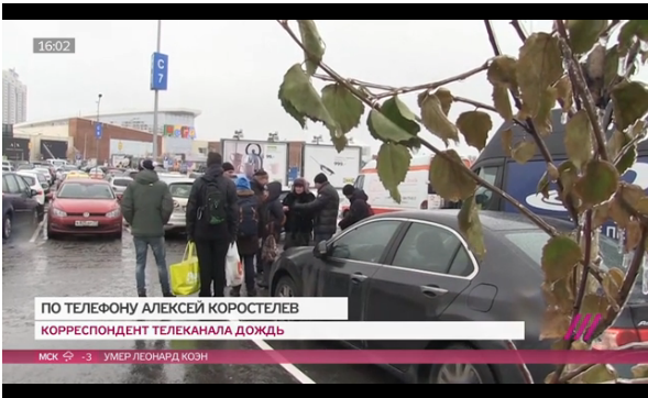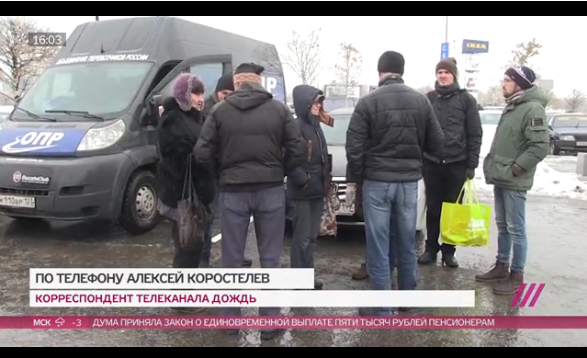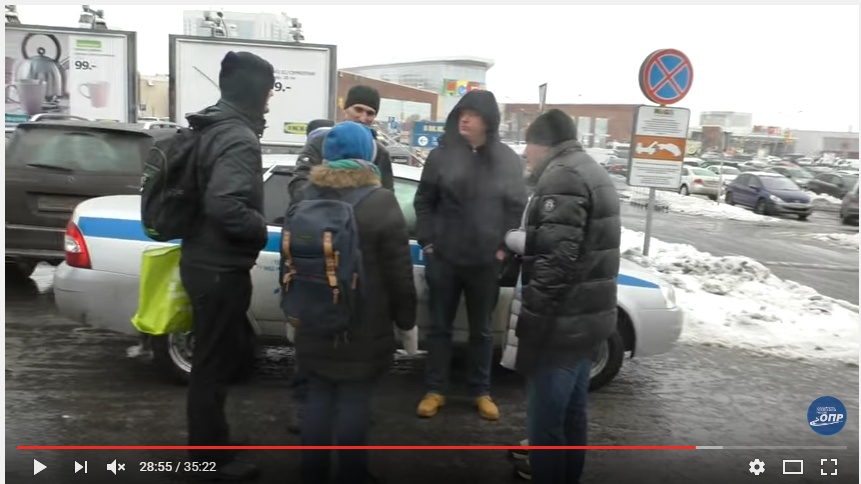 Потом мы уже решили расходиться. На парковке нас ожидали журналисты с телеканала Дождь для заключительного интервью по поводу дальнобойщиков, которое они взяли у Сергея Рудаметкина, как председателя московского отделения ОПР. Ещё журналисты попросили Олега Литвинова сыграть им на гитаре в прямом эфире. Я знал, что Олег Литвинов хорошо играет, потому что только недавно слышал его песни в Мега Химки, где он нам играл. Но Олег сказал, что исполнит какую-то особую песню, поэтому я решил остаться и не отходить далеко, чтобы послушать. Выход в прямой эфир задерживался, но почему-то количество полицейских становилось больше на стоянке. После окончания прямого эфира, на которой играл свою замечательную песню Олег Литвинов, к нам подошли полицейские. Я не слышал, как кто-либо из полицейских представлялся, но они о чём-то говорили и даже возможно спорили с Михаилом Курбатовым, Владимиром Синицыным. Как я понял, спорили они по поводу внутренних наклеек на машине Вламимира Синицына. Чтобы не накалять события я отошёл в сторону и наблюдал со стороны. Потом услышал от Елены Филипповой, что к нам подошел муниципальный депутат Андрей Малыгин на встречу. Мне стало интересно познакомиться, я подошел к депутату, мы поговорили немного и постояли вместе.