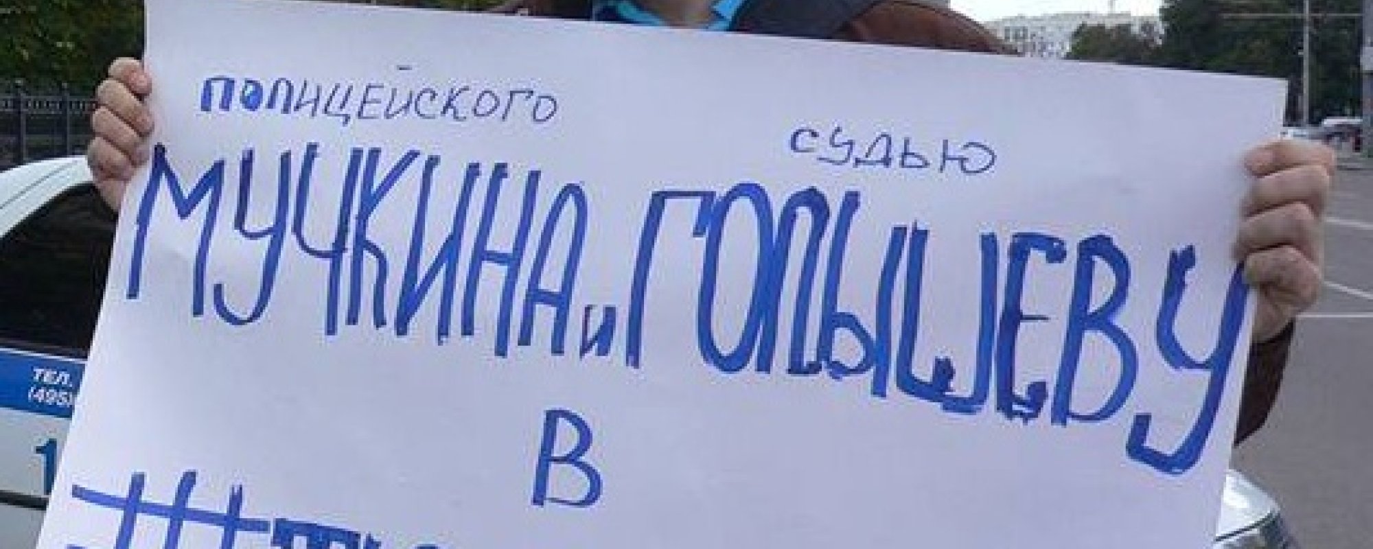 Все началось из-за того, что Голышеву и Мучкина не хотели привлекать к ответственности (история с диктофоном). Я решил: раз на мои заявления и заявления десятков людей не реагируют, встану-ка я с одиночным пикетом возле здания МВД на Житной 16, может, тогда обратят внимание на жуткий и доказанный беспредел. Сделал заметку в соцсетях о мероприятии.