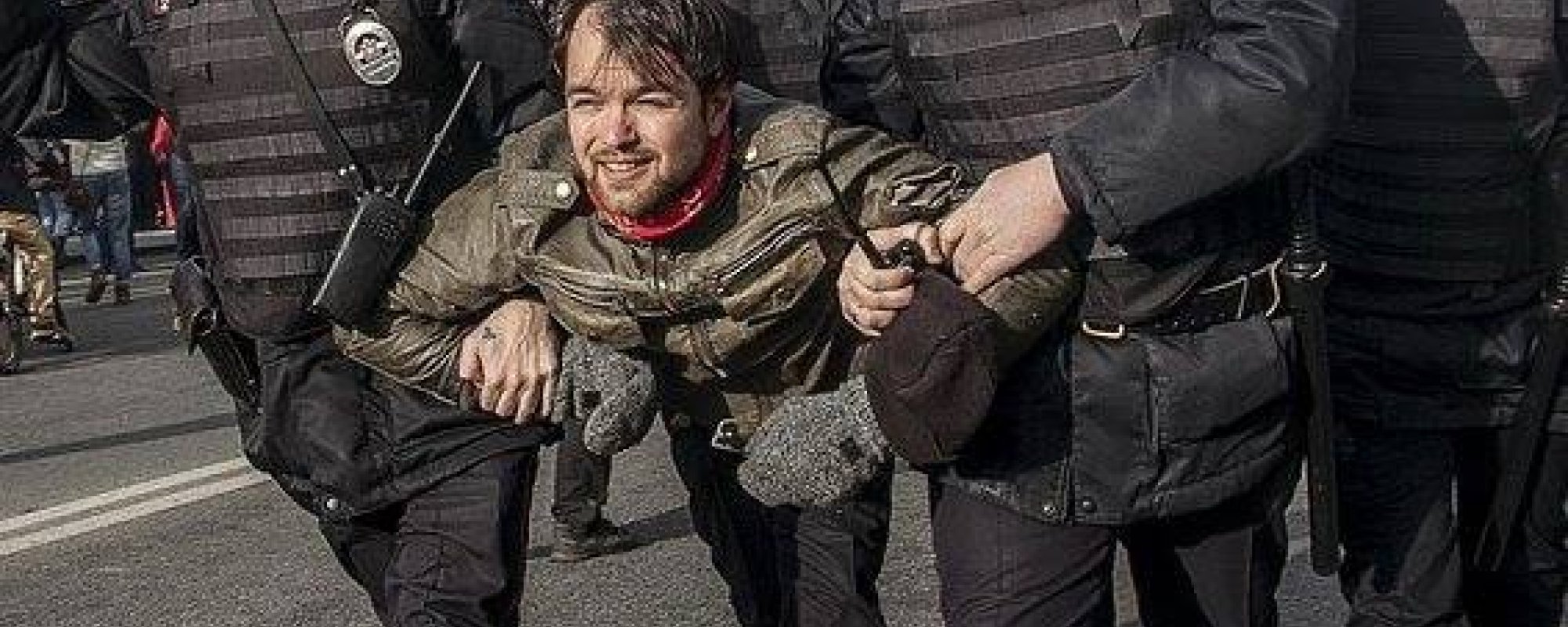 Тут отдельно важно отметить, что на Сретенском бульваре никакого оцепления не было, но, тем не менее, российский суд признал, что Олега Лутина задержали на Страстном бульваре, а Михаила Медовщикова — на Сретенском. А теперь смотрим на фото, на котором видно, что Медовщикова и Лутина задержали вместе. Но по документам — одного на Страстном бульваре, другого — на Сретенском. Вот такой вот российский суд!