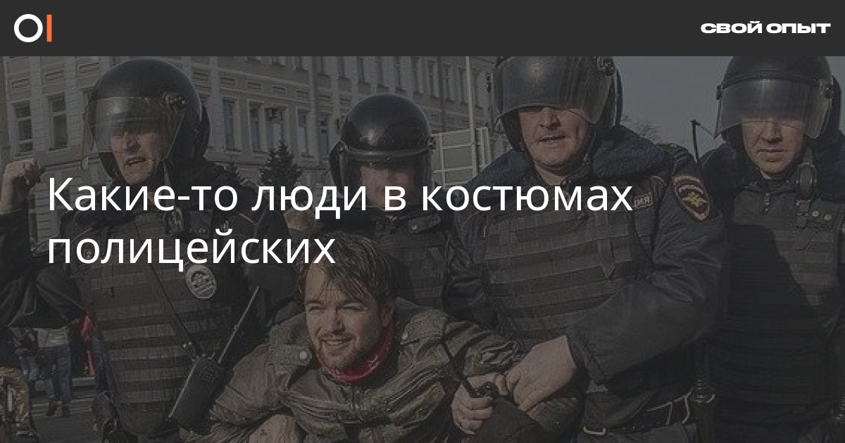 26 марта около 16:30 какие-то люди в костюмах сотрудников полиции скрутили меня у выхода из метро «Чеховская». Противоправных действий я не совершал, законных причин для задержания не было, оно прошло с многочисленными нарушениями ФЗ «О полиции» (не представились, не назвали основание для задержания, не предупредили о применении физической силы, применили физическую силу без законных оснований). Несколько раз я спрашивал, почему меня задерживают, в ответ меня били и орали: «Заткнись, & #@%ь! Язык вырву!».