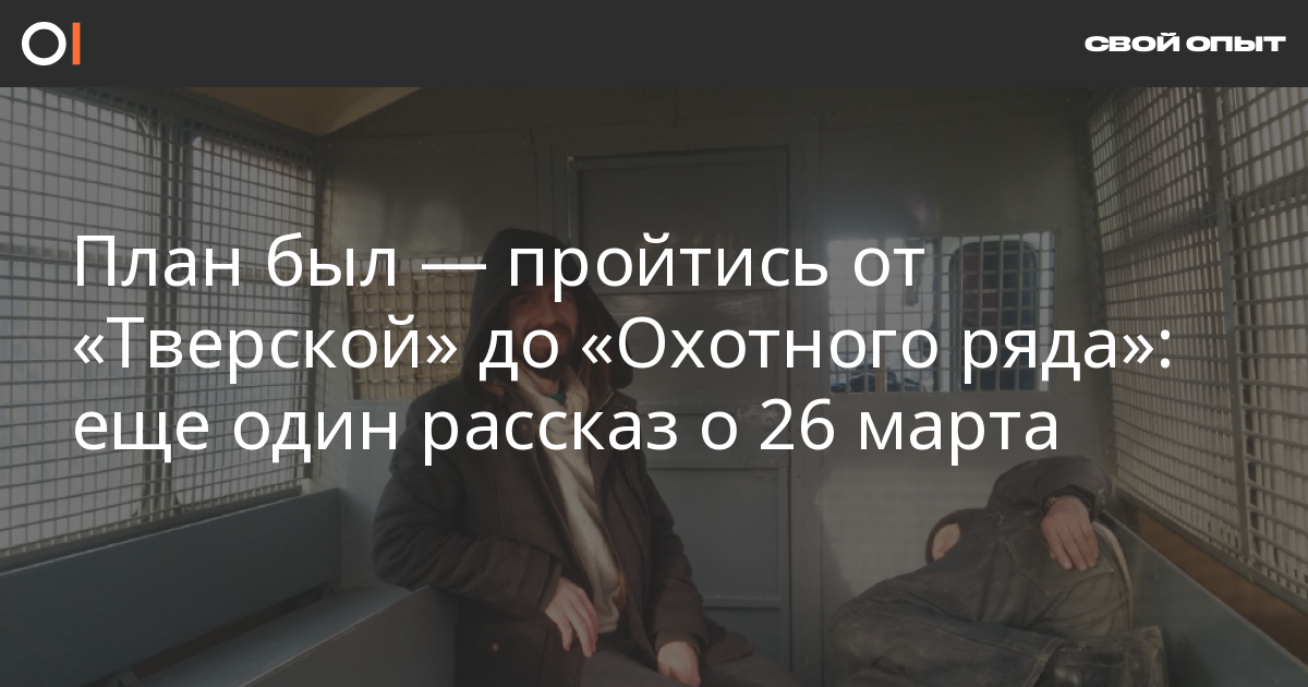 Уголовные дела по событиям 26 марта с феноменальной скоростью уже переданы в суды, уже есть и первые три приговора. Поэтому ОВД-Инфо продолжает публикацию рассказов участников этих акций: о том, что на них происходило на самом деле. Rudolph Goppe, с которым все это произошло получил 15 суток прогулку по центру Москвы.