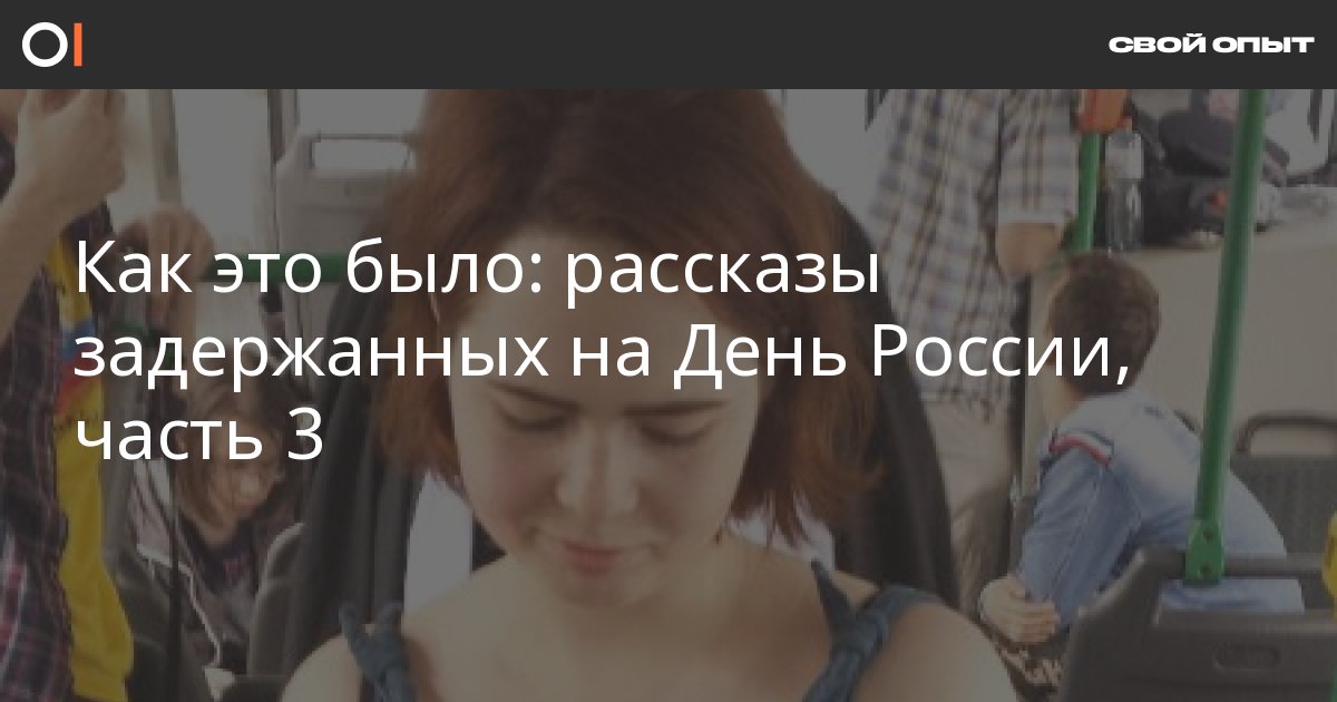 12.06. 14:22. Зашла в автобус после долгих препирательств. Желала услышать фамилии людей, меня укравших с этого праздника жизни. В ответ прилетела угроза: «Девушка, вы что хотите, чтобы мы вас скрутили?». Посмотрели мой рюкзачок. Там был пирог еще теплый. Предложила открыть, дать понюхать. Люди в черном отказались. Девушка-волонтер раздавала пакет бумаг с полезной информацией по поводу задержания.