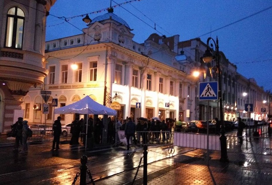 Вот как я все это увидел. Проведя утром рекогносцировку, я понял, что соваться внутрь загона — провальная тактика. Они там все будут контролировать. Зато рядом — на отрезке Рождественской в районе ресторана «Безухов» от Ивановской церкви до первого ментовского блокпоста — была прекрасная площадка, освобожденная от транспорта, где спокойно могли бы мирно, без оружия, собраться 3–4 тысячи человек и показать, кто в доме хозяин: мы или тараканы. Прибыв в штаб, я предложил изменить место сбора и был поддержан Анной (Петкогло, координатором предвыборного штаба Алексея Навального — ОВД-Инфо) и собравшимися активистами. Возникла короткая дискуссия — когда информировать людей о том, что собираемся вне ограждений и в загон не идем? Решили, что не раньше, чем за час до мероприятия. Был ли сделан такой анонс и если да, то во сколько — мне не известно. Я предупредил собравшихся, что по моему опыту штаб будет заблокирован за несколько часов до мероприятия, и лучше всем отсюда как можно быстрее уйти, если мы хотим дойти до места проведения акции. После чего я сам быстро слинял, но сделал глупость, отправившись к себе в офис, то есть в такую же ловушку. Никаких провокаций у меня в офисе не было года так с 2013, если не считать всяких НОДовских камланий под дверью, поэтому я, дурак, расслабился. Между 15 и 16 позвонила Анна, сообщила, что большинство активистов ушло из штаба, но они уйти не успели, и их заблокировали — всех, кто выходит, задерживают. Попросила меня быть организатором акции. Я согласился, увы, понимая, что у меня нет фактически никаких инструментов и времени для координации действий. Через полчаса после этого разговора и в мой офис начали барабанить менты, и я едва оттуда выбрался. Моей заслуги тут нет — только благодаря исключительному ротозейству долбоящеров из ЦПЭ (говорят, в это подразделение ссылают самых тупых ментов со всей области, под стать начальнику — полковнику Алексею Трифонову) удалось мне оттуда выбраться и доехать до Рождественской. Там я увидел, что на оговоренном отрезке Рождественской практически никого нет — собралось нас там человек 20, не больше. Как я понял, информация об изменении места сбора так и не была широко распространена. Потом мне позвонила Аня Степанова и сообщила, что она в центре загона на Маркина, и там собралось довольно много активистов. Поэтому мы пошли туда.