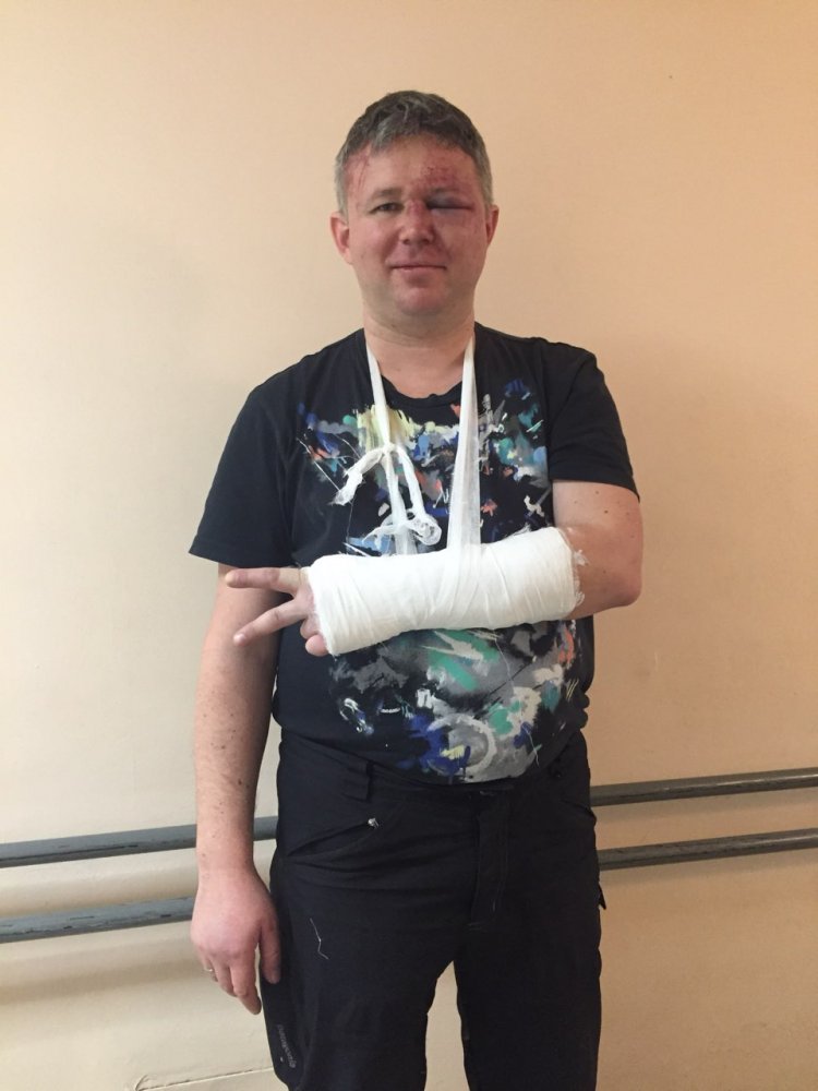 У меня перелом левой скулы с осколками. Подозревали, что повреждена сетчатка, но в итоге выяснилось, что глаз цел. Справа гематома височной области, закрытая черепно-мозговая травма, сотрясение мозга. Перелом руки, требующий сложной операции со штифтом. Ушибы грудной клетки и пояснично-крестцового отдела — сидеть, вставать и лежать больно. Ребра целы, внутренние органы тоже. Можно сказать, что мне повезло.
