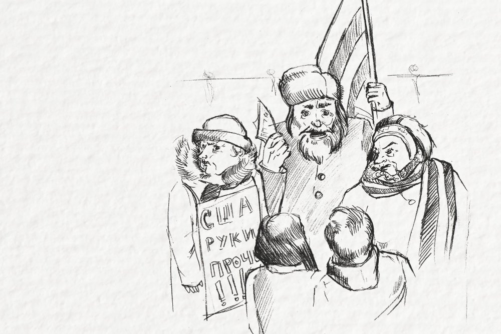 Прошлой весной мы гуляли в районе Чернышевской и наткнулись на пикет НОДа у посольства США: все нарядные, в шарфах цвета георгиевских ленточек, в ватниках, орут. Начали спрашивать, по какому поводу у них мероприятие. НОДовские дедки и тетеньки подумали, что мы заинтересованная молодежь, и сели на уши. Оказалось, они выступают против прав человека. Они кричали: «Законы Российской Федерации должны быть превыше Конституции! Это все Запад и США навязывают Путину свои правила игры, все эти ювенальные юстиции, эти вот зоозащитники! Враги России рядом с границей устанавливают противоракетные установки и эхорадиолокаторы, чтобы все самолеты теряли связь и падали!» Виктор — человек технически развитый, его заинтересовали слова про «эхорадиолокаторы». Он спросил, известны ли НОДовцам законы физики. После вопроса тетенька в георгиевском шарфе начала кричать на Виктора: «Законы физики могут существовать если не противоречат законам Российской Федерации! Полиция! Уберите провокаторов!» Печальный полицейский, охранявший этот контактный зоопарк, попросил не усугублять ситуацию и уйти. На этом наша «акция» закончилась. Парочку из тех активистов я узнала на фотографиях у здания ФСБ.