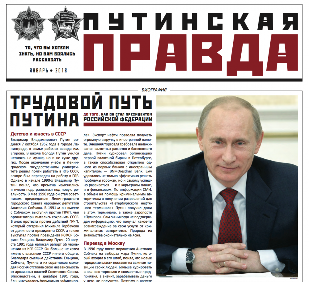 Я работал в советах директора таких газет как «Аргументы и факты», «Труд». Это газеты, как раз нацеленные на аудиторию старше 45 лет. Во время мэрской кампании я решил издавать газету «Правда о Москве», которая критиковала Собянина. Эксперимент оказался достаточно эффективным. Затраты на один голос, отобранный у Собянина, у меня были почти в два раза ниже, чем затраты у кампании Навального или Мельникова, и в 6 раз ниже, чем у Митрохина. На этих выборах я решил повторить эксперимент и сделал газету «Путинская правда».