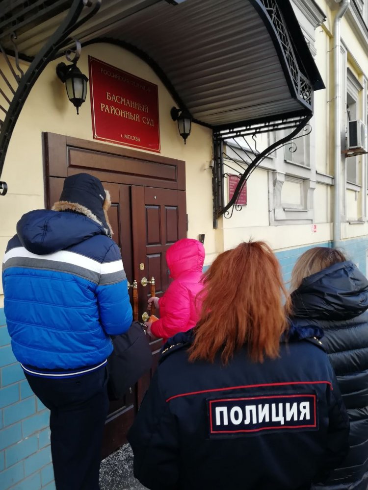 Беглова тут же его порвала и написала новый. Далее меня повезли в Басманный суд. В суде, пока ожидалось начало заседания, я просил сопровождавших меня сотрудников ознакомить меня с материалами дела, но они отказывали мне в этом. При поддержке юриста ОВД-Инфо Дениса Шедова по телефону на судебном заседании я ходатайствовал об отложении рассмотрения дела для ознакомления с материалами. Суд удовлетворил оба ходатайства и назначил заседание на 5 марта.