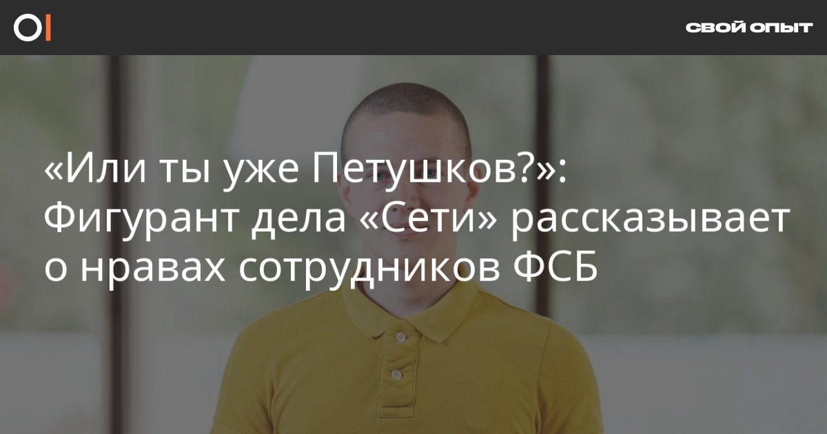 20 апреля Следственный комитет официально отказался возбуждать уголовное дело по заявлению фигуранта дела «Сети» Виктора Филинкова о пытках, которым его подвергли сотрудники ФСБ. Более того, этим самым сотрудниками позволено посещать его в СИЗО. ОВД-Инфо публикует адвокатский опрос Филинкова, во время которого он рассказывает, как с ним общаются пытавшие его сотрудники спецслужбы сейчас.