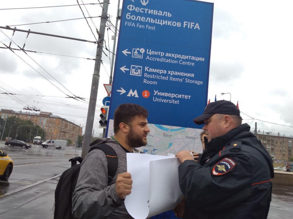Инициативная группа МГУ вместе с первичной организацией нашего профсоюза в университете долго боролись против фан-зоны, и во многом, к сожалению, безуспешно. Незадолго до начала чемпионата мира было возбуждено уголовное дело против студента МГУ Дмитрия Петелина, который «осквернил» картонный информационный стенд. Дело появилось уже после введения в действие 202-го указа президента России об обеспечении проведения мундиаля, ограничивавшего возможности проведения уличных акций. (Позже уголовное дело было закрыто — ОВД-Инфо).