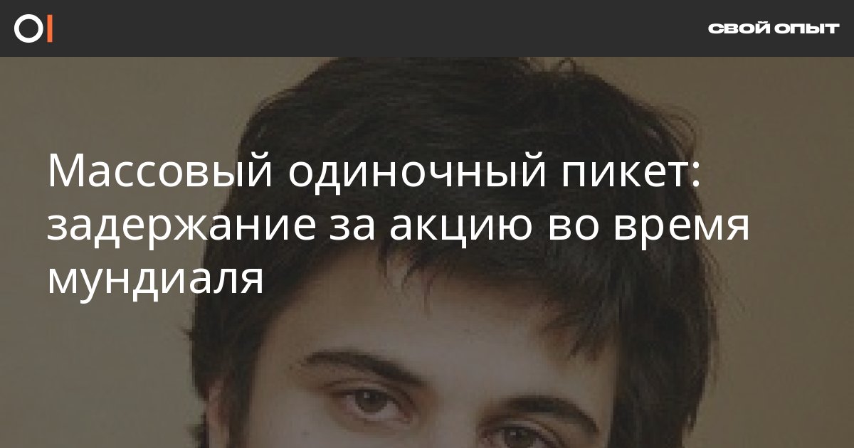 Сопредседатель независимого профсоюза вузовских преподавателей «Университетская солидарность» Андроник Арутюнов рассказал о том, как его задержали за одиночный пикет. 8 июня недалеко от МГУ во время чемпионата мира по футболу он протестовал против уголовного дела за граффити рядом с университетом. Арутюнова оставили на ночь в ОВД и оштрафовали на 20 тысяч рублей. 28 августа Мосгорсуд утвердил штраф.