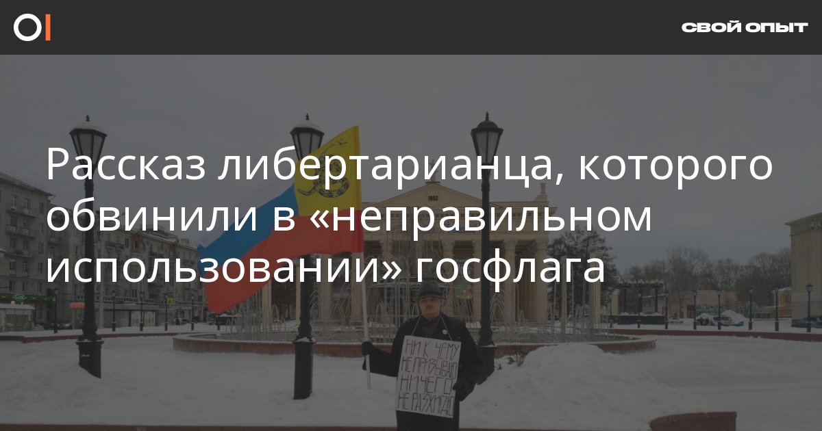 Либертарианец из Новокузнецка Лев Гяммер, регулярно участвующий в местных протестных акциях, купил себе флаг с триколором и желтым квадратом, в котором нарисована змея. Гяммер сходил с ним на пикет и «флаговую прогулку». Теперь активиста пытаются привлечь к административной ответственности за «неправильное использование» государственного флага.