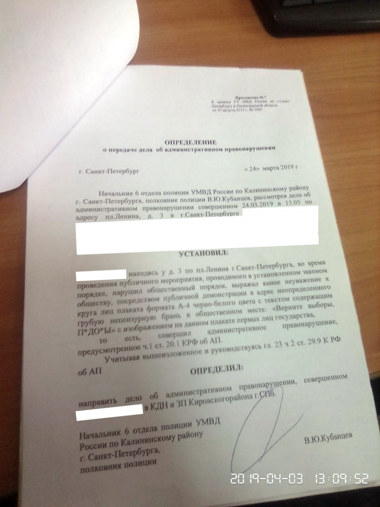 Подростка Никиту задержали 24 марта на митинге в Петербурге. Он пришел с плакатом «Верните выборы, пидоры», где в последнем слове две буквы были закрыты фотографиями Путина и Медведева. Его задержали и составили протокол о мелком хулиганстве. Родителей в тот момент не было в стране, и его отвезли в Центр временного содержания для несовершеннолетних правонарушителей. Никита рассказал ОВД-Инфо, как он провел там пять суток.