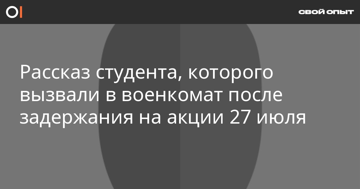 Я не очень понял, как ГСП (городской сборный пункт — оттуда происходит отправка призывников в военные части, — ОВД-Инфо) расшифровывается, но сотрудница районного военкомата мне сказала, что это городской военкомат. Я ей рассказал о повестке, которую принесли в начале августа. Она удивилась, пошла в соседний кабинет, потому что не понимала, что со мной делать. Там она спросила у какого-то мужчины, он сказал: «Так пишут тем, кого задерживали [на митингах], им надо объяснительную написать».
