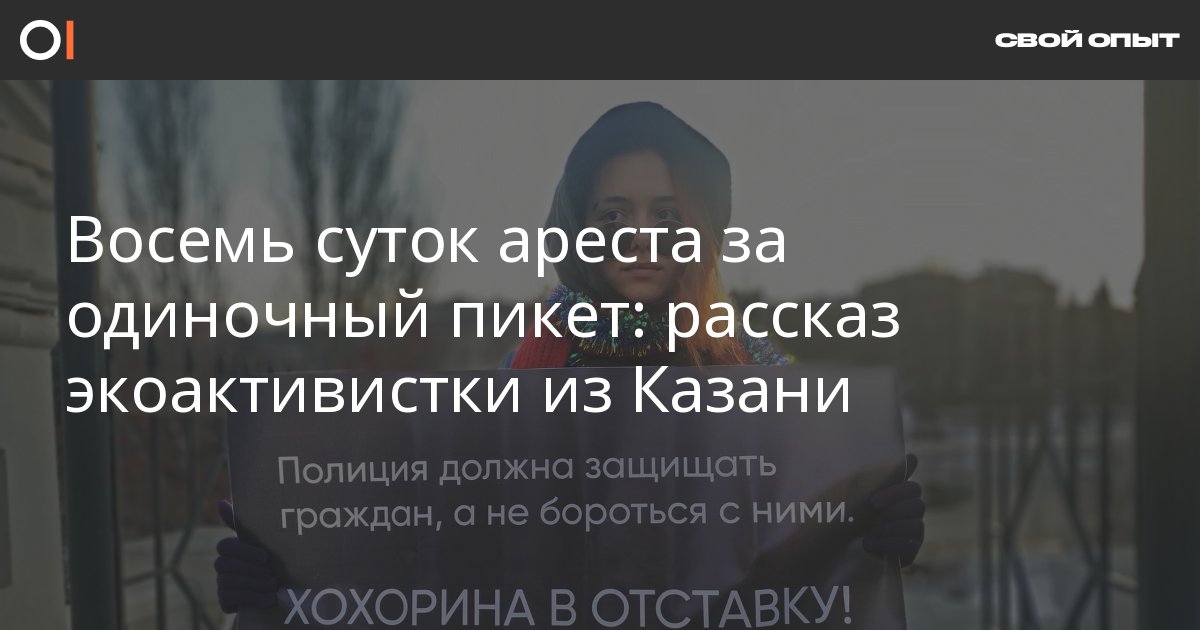 Жительница Казани Марина Шоетова участвовала в сменяемом одиночном пикете за отставку главы МВД Татарстана: до этого полицейские разогнали протестный эко-лагерь. Шоетова получила восемь суток ареста. ОВД-Инфо записал ее рассказ.