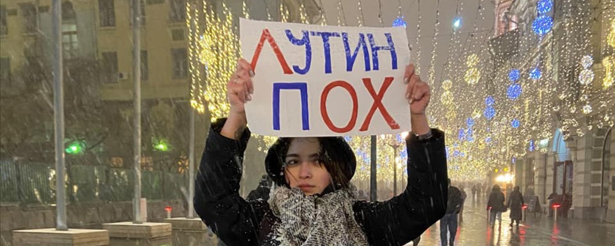 Затем мы дошли до ФСБ, я решила встать в пикет. До этого постоял мальчик недолго, а я решила после него. Встала с плакатом, на котором было написано «Лутин Пох». Сотрудники второго оперативного полка просто скрутили мне руки и затащили в автозак.