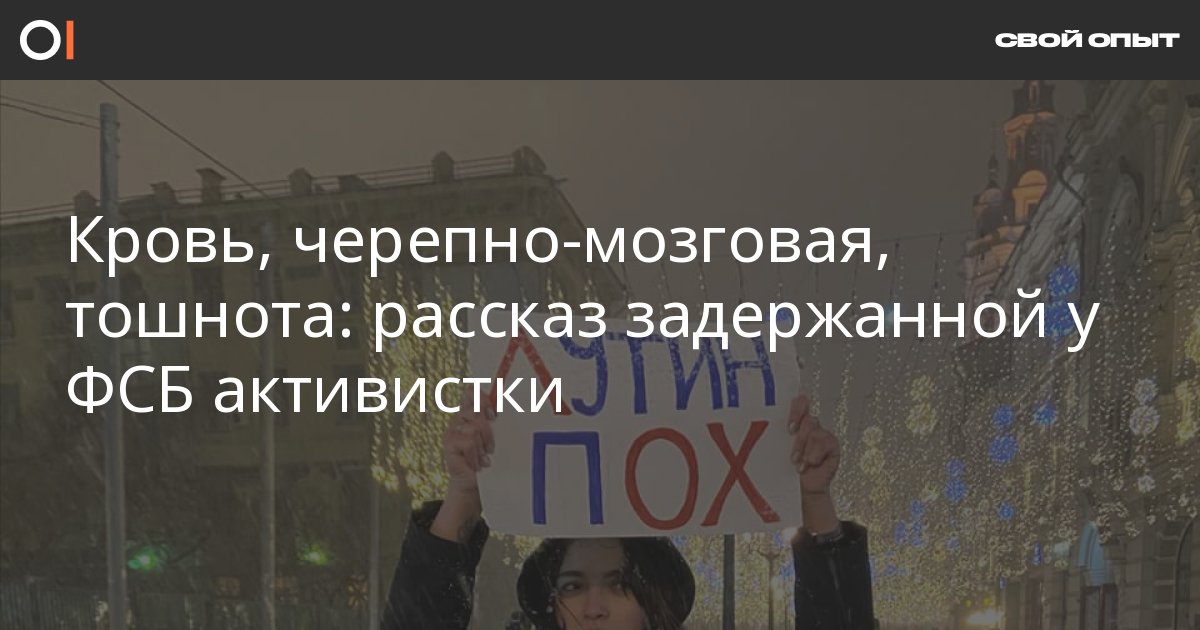 14 марта автора телеграм-канала «цвеТЫ для Володи» Веру Олейникову задержали во время пикетов против изменения Конституции и в поддержку политзаключенных на Лубянке. В отделе полиции «Китай-Город» к девушке применили силу, из-за чего она получила черепно-мозговую травму. Из больницы Олейникову выписали, как она считает, по указанию властей. ОВД-Инфо записал ее рассказ.
