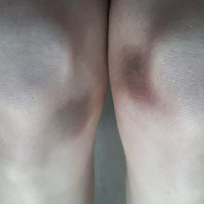 Участковый стал кричать, чтобы я отошла, хватал меня за плечи. Я говорила, что могу там стоять и передавать рекомендации от адвокатов. Тогда он схватил меня за шею и толкнул, я упала на пол. На коленях остались большие синяки. Вокруг все кричали, я тоже. Потом он затолкал меня в камеру и закрыл.