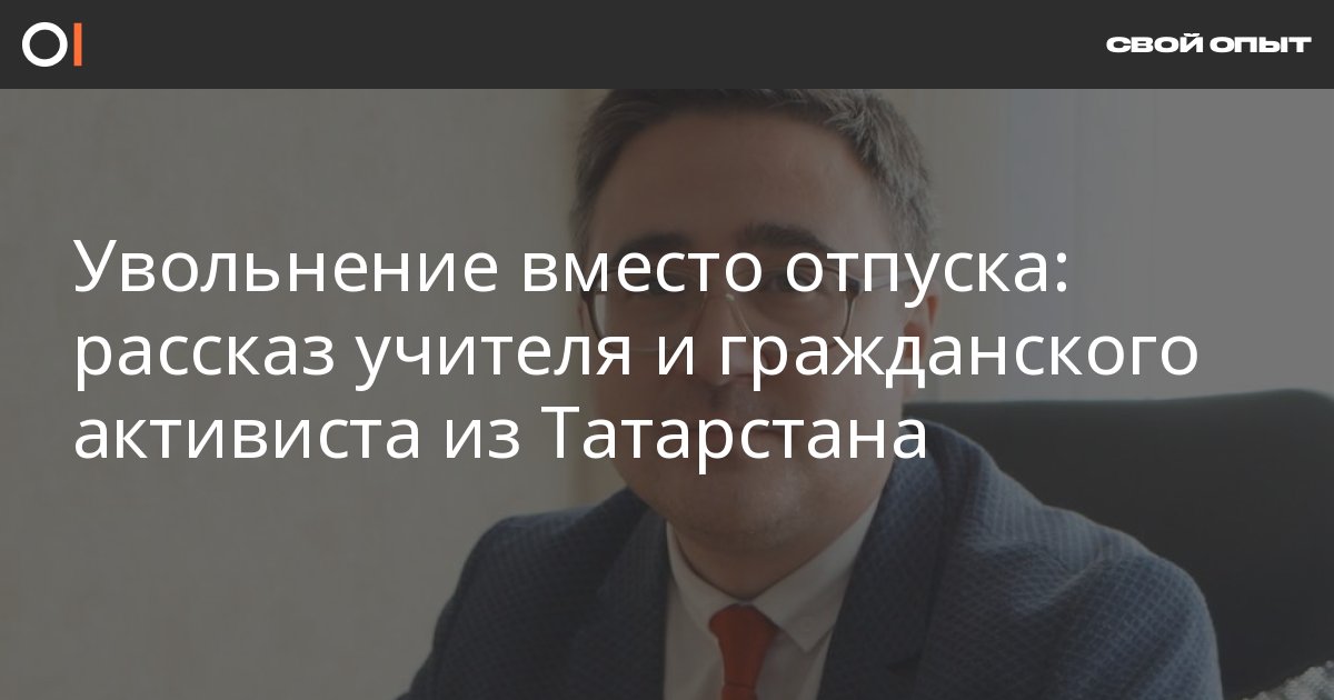 Учителя истории и председателя отделения профсоюза «Альянс учителей» Раушана Валиуллина из Набережных Челнов увольняют из школы, где он проработал 10 лет. По мнению Валиуллина, это связано с его политической деятельностью и гражданской позицией. ОВД-Инфо публикует рассказ учителя.
