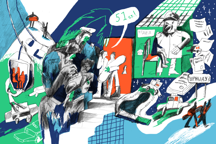 Все это было в полуугрожающем, полунепонимающем тоне. Они попросили сразу паспорт. Когда я сказал, что только из моих рук, они начали угрожать, и один из них стал говорить, что у меня что-нибудь найдут. Я этого полицейского, к счастью, потом не видел; когда я у него спрашивал про статью, он говорил, что сейчас поедем ко мне домой и точно найдем там что-то — и тяжелое, и легкое. Я много раз был в таких ситуациях и не знаю, как в такой момент отстоять свои права, поэтому мы дали им паспорта, они их не отдавали до вечера.