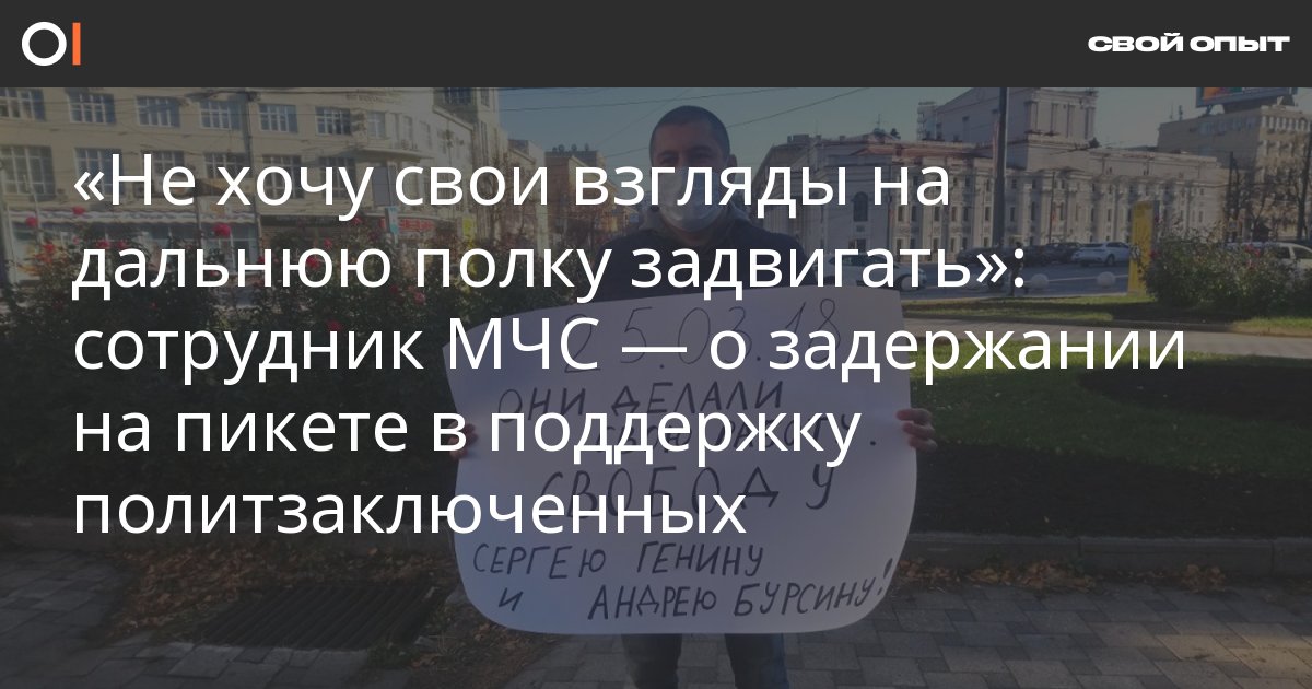 Работа в МЧС у нас на самом деле очень тяжелая. Я недавно просил мне отпуск дать — у меня там сейчас 14 дней осталось. Не отпустили. Думаю, все это тоже с пикетами связано. В общем, закручивают у нас гайки по всем фронтам — все делают, чтобы меня плохим в глазах подчиненных выставить.