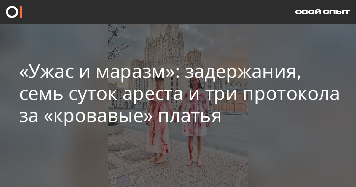 29 мая в Москве активистки Людмила Анненкова и Наталья Перова сделали фотографию у здания МИДа в белых платьях со стилизованными под кровь следами красной краски. Каждой из них дали по семь суток якобы за сопротивление полиции, а также штрафы по статьям о дискредитации армии и нарушении порядка организации массовых мероприятий. Публикуем рассказ Людмилы о событиях.