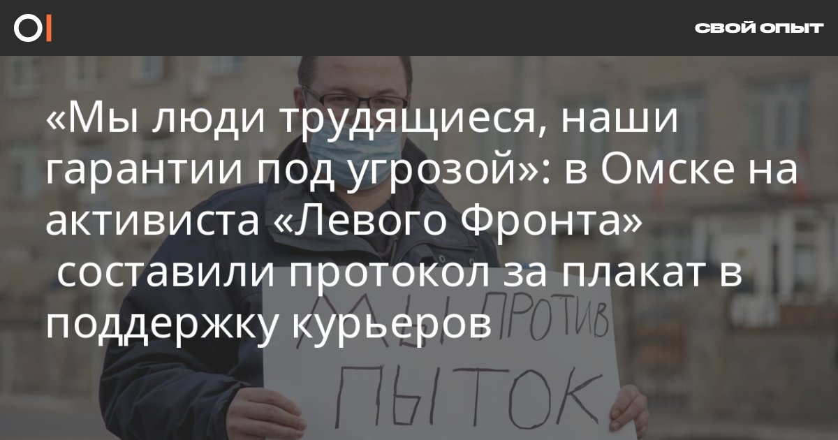Артем Казаков — активист омского отделения «Левого Фронта», участник множества акций, от выступлений против пыток во ФСИН до автопробега ко Дню Октябрьской революции. В декабре 2022 года на него составили протокол по «коронавирусной» статье (ст. 20.6.1 КоАП) за фото с плакатом в поддержку бастующих курьеров. ОВД-Инфо поговорил с Казаковым о давлении полиции и бессмысленности «тяжкого рвения» силовиков.