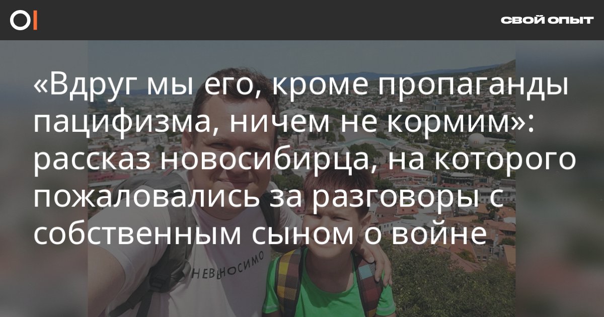 19 января директор новосибирского частного колледжа «Новоколледж» Сергей Чернышов узнал, что на него пожаловались детскому омбудсмену — авторы обращения сочли, что Сергей прививает своему девятилетнему сыну Федору «ценности пацифизма». Ранее на мужчину уже жаловались в министерство образования из-за сказки «Гадкий утенок», а два года назад его семье угрожали из-за ее «морально-этического облика». Публикуем монолог Чернышова.