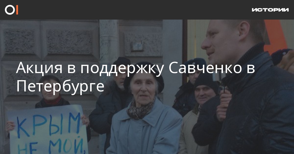 21 марта 2016 года в день оглашения приговора Надежде Савченко в Петербурге прошла акция в поддержку Савченко. До начала акции было задержано три человека. В ходе самой акции на одного из участников напал провокатор — ударил активиста и испачкал одежду жидкостью красного цвета. Провокатора задержала полиция.