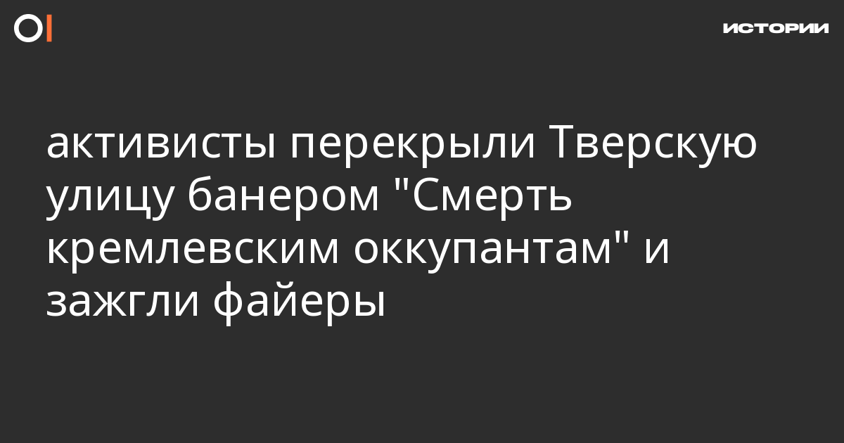 активисты перекрыли Тверскую улицу банером "Смерть кремлевским оккупантам" и зажгли файеры