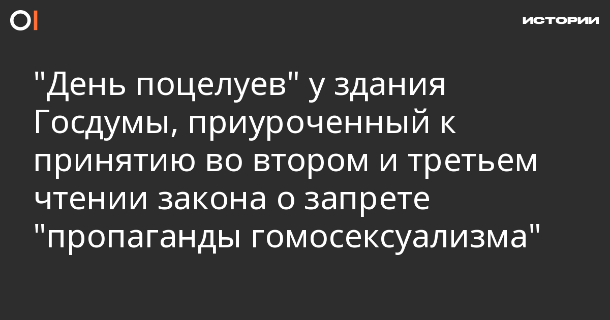 "День поцелуев" у здания Госдумы, приуроченный к принятию во втором и третьем чтении закона о запрете "пропаганды гомосексуализма"