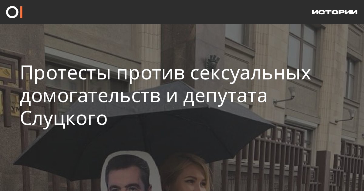 Три журналистки обвинили депутата Госдумы Леонида Слуцкого в сексуальных домогательствах. Комиссия Госдумы по депутатской этике рассмотрела жалобы журналисток, но не нашла нарушений в поведении Слуцкого. После этого в Москве начали проходить серии одиночных пикетов, участников которых стали задерживать. Кроме того, мэрия несколько раз отказала в согласовании массовых акций.
