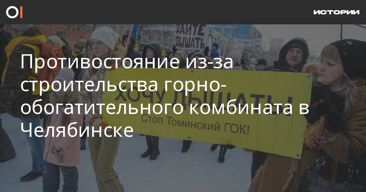 Жители Челябинска противостоят местным властями и «Русской медной компании» из-за строительства горно-обогатительного комбината (ГОК). Активисты движения «Стоп ГОК», которое появилось еще в 2013 году, проводят акции об экологических проблемах в связи со строительством.